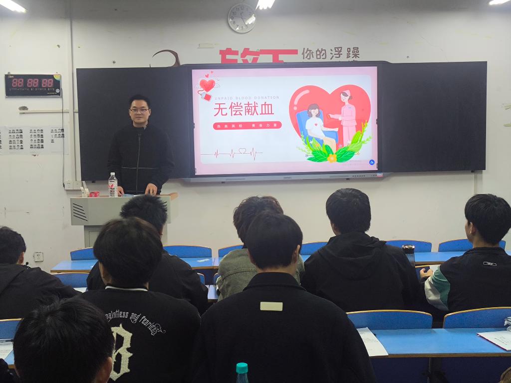 班会伊始,辅导员通过生动的PPT展示向同学们详细宣传了无偿献血的政策法规。通过生动的讲解,让同学们了解到无偿献血不仅是一种无私奉献的行为,更是受到国家法律保护和鼓励的公益活动。为同学们参与无偿献血提供了坚实的法律依据和保障。