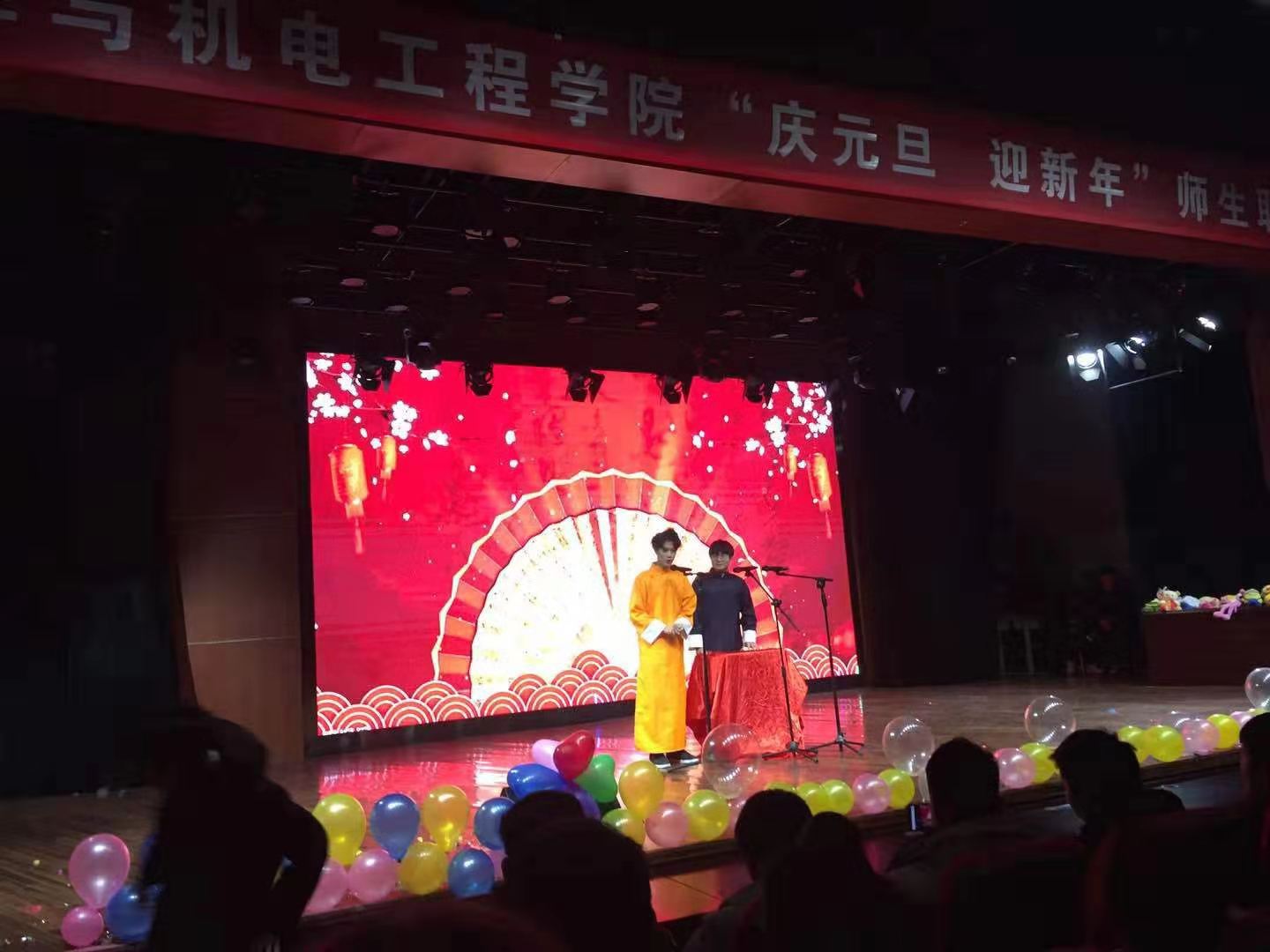 锣鼓声声辞旧岁,张灯结彩迎新年,为庆祝元旦佳节,丰富校园文化生活,活跃学习氛围,给同学们一个真正展示自我风采和勇气的舞台。2019年12月24日19:00,365英国上市公司在公司励德厅举办2020元旦师生联欢晚会。员工处处长李秀萍、校团委史丽珍、信息工程公司党总支书记李强、汽车与机电工程公司党总支书记崔东风、副经理齐俊平、刘胜杰、院综合办主任李永辉、员工管理办主任田伟华以及全体辅导员老师参与了本次活动。