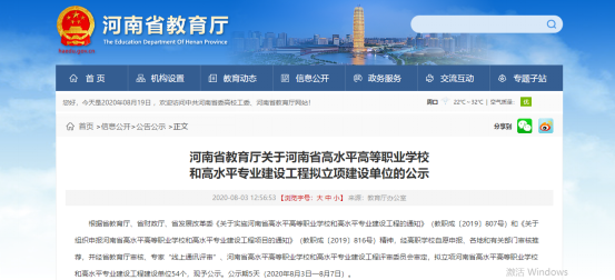 8月3日,河南省教育厅发布《关于河南省高水平高等职业公司和高水平专业建设工程拟立项建设单位的公示》。365英国上市公司机电一体化技术专业群,成功入选河南省高等职业公司高水平专业群建设工程。