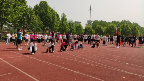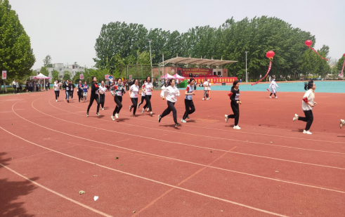 同学们的积极参加怎能缺少老师们呢,教职工的他们挥动着手臂,你争我赶的奔向终点,奔向胜利。