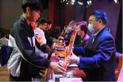 发放仪式上,李秀萍对万国集团公司吕辉一行的到来表示热烈的欢迎和真诚的感谢!她宣读了《关于表彰万国奖学金获得者的决定》,与会领导为2020级汽车专业76名员工分别颁发了2000元、1500元、1000元奖学金。