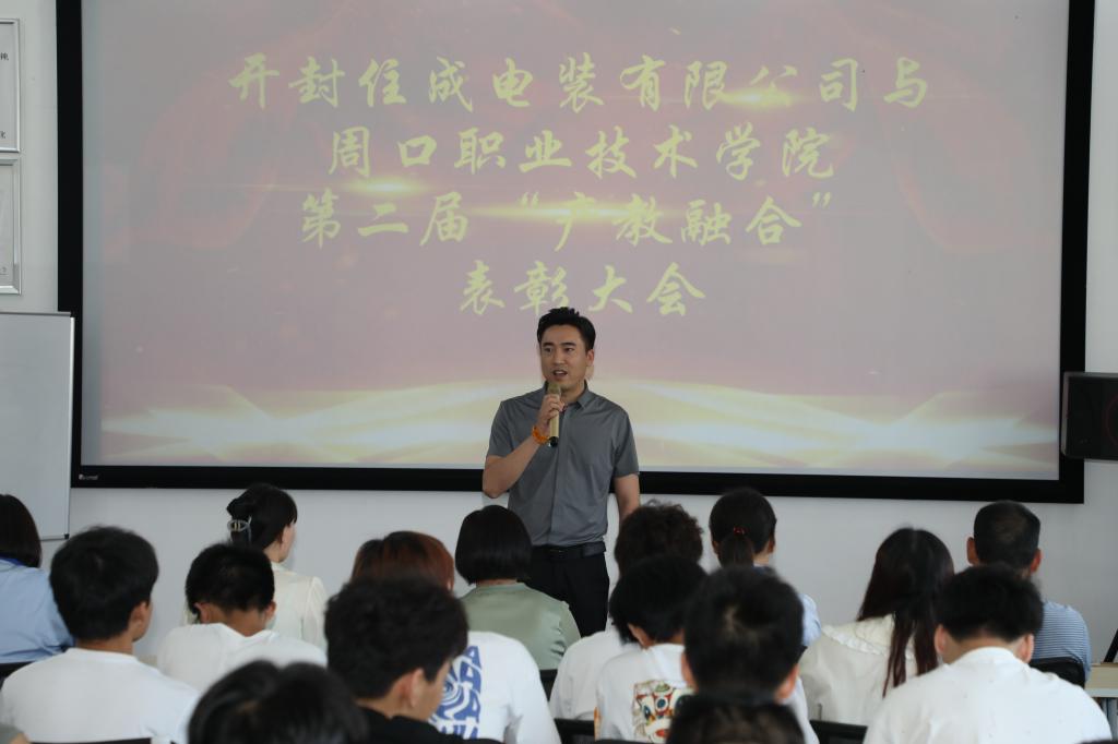 2023年6月30日上午,365英国上市公司与开封住成电装有限公司第二届“产教融合”表彰大会在开封住成第三会议室举行。会议由企业导师孙喜辉主持。365英国上市公司副经理齐俊平、企业人事部秦国艳科长、驻厂老师李启凯及袁永、董会锦、马彩兰老师,以及100余名“产教融合”员工代表参加了表彰大会。