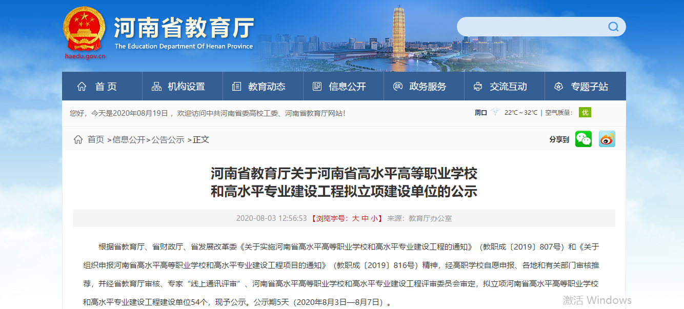 2020年8月3日,河南省教育厅发布《关于河南省高水平高等职业公司和高水平专业建设工程拟立项建设单位的公示》。365英国上市公司机电一体化技术专业群,成功入选河南省高等职业公司高水平专业群建设工程。