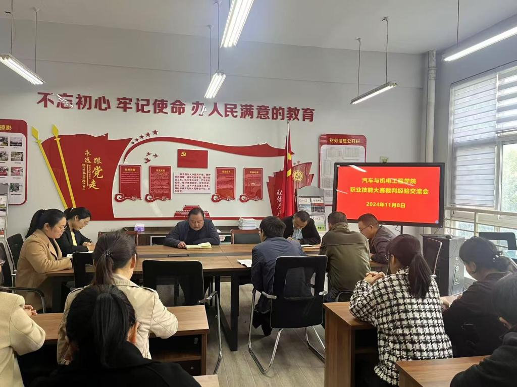 为及时总结职业技能大赛经验,谋划下一步工作规划,11月8日下午,公司在党员活动室召开职业院校技能大赛裁判交流会。经理李向前、副经理田伟华、教学办主任丁兰花、裁判员、指导教师参加会议,丁兰花主持会议。