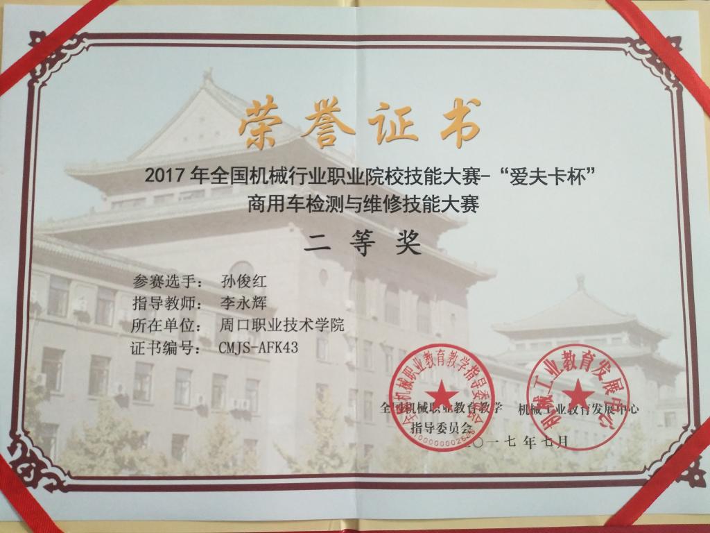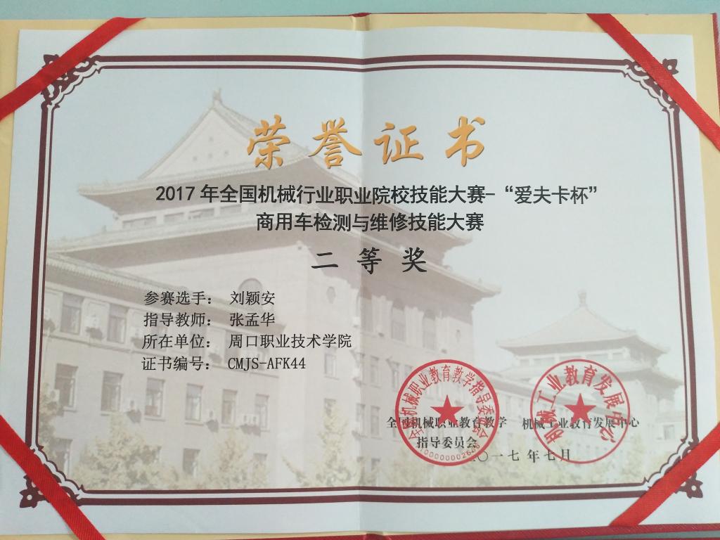 2017年全国商用车检测与维修职业技能大赛荣获两项“二等奖”