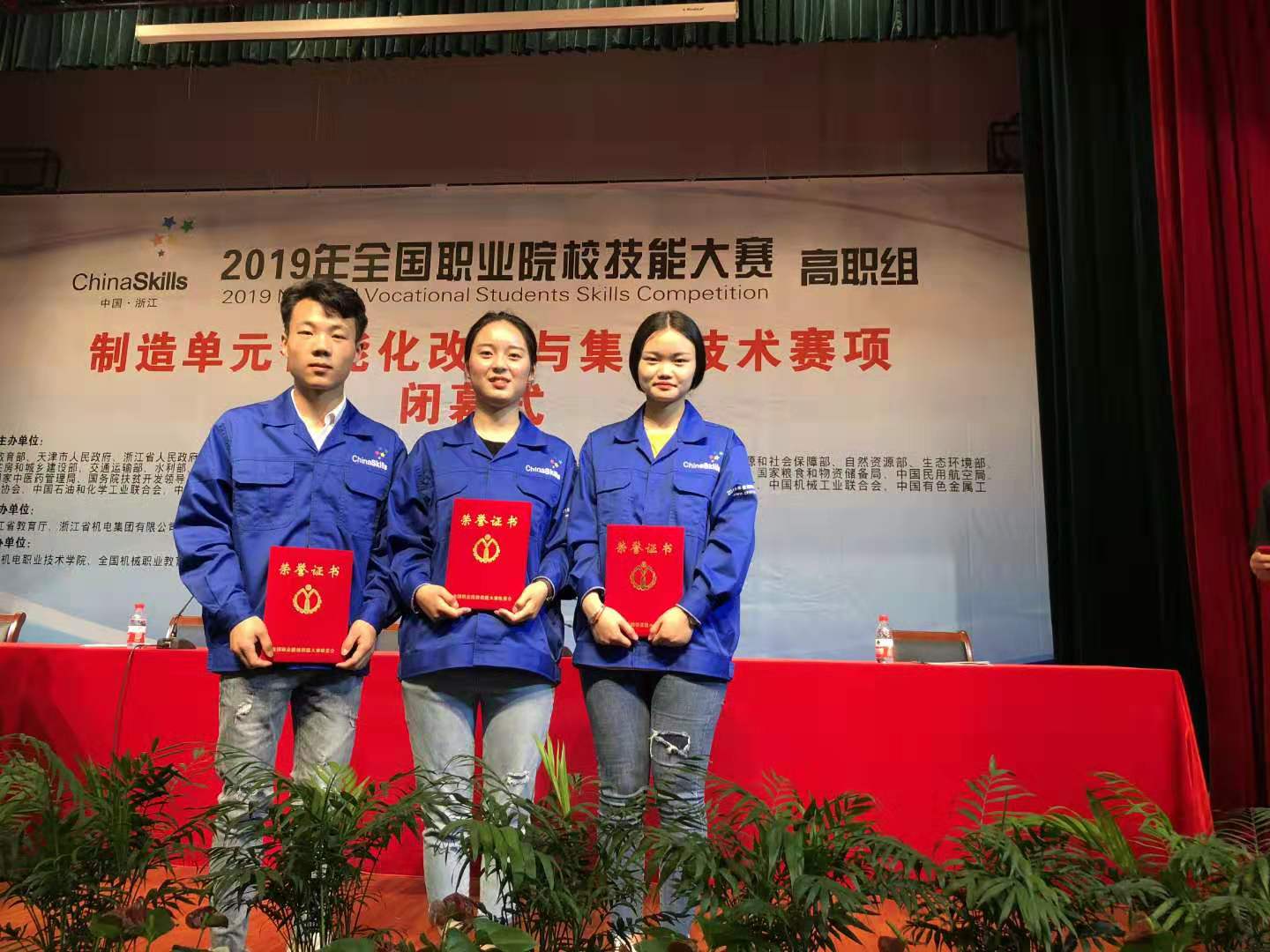 2019年6月2日,第十二届全国职业院校技能大赛成绩揭晓,365英国上市公司参赛队再创佳绩,麻静怡,王蒙佳,刘进三名员工,在严胜利经理和张昭晗老师的精心指导下,代表河南省参加的“制造单元智能化改造与集成技术”项目,获得国赛三等奖。