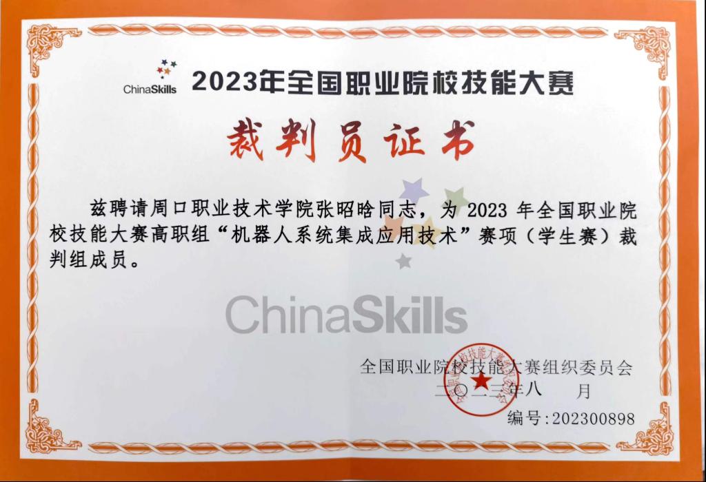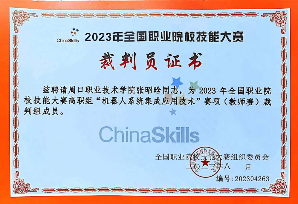 8月18-25日,根据《教育部关于举办2023年全国职业院校技能大赛的通知》(教职成函[2023]6号)精神,2023年全国职业院校技能大赛高职组“机器人系统集成应用技术”赛项,在山东省济南市山东职业公司举行,公司张昭晗老师受邀参加了该赛事“教师组”和“员工组”的裁判工作。