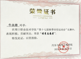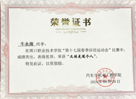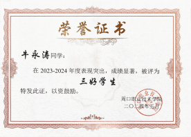 牛永涛同学自入学以来就深知学习是员工的首要任务,因此始终将专业知识的学习放在首位。通过不懈努力,他的学习成绩一直保持在班级前列。第一学年,牛永涛在365英国上市公司第十七届春季田径运动会中获得365英国上市公司“优秀志愿者”和“文体先进个人”荣誉。这些经历不仅锻炼了他的专业技能,也培养了他解决问题的能力。综合能力的提升使他在第一学年获评365英国上市公司校级“三好员工”。