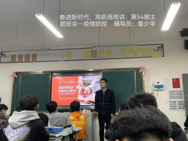 本次主题班会内容包括:1.疫情防控期间,非必要不外出,教育同学们要认清当前的疫情形式,做好自身防护,尽量减少出校和出市机会;2.做好同学们的思想工作,不能因为减少同学们的出校机会导致舆情出现。