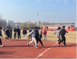 本次比赛主要是两人三足、四人五足项目等,共有18个班级参加,百余名选手参加,各班内部进行两人三足初选,随后以班级为单位进行四人五足比拼。