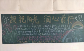 为了增强老员工心理素质,促进老员工心理健康良好的发展,加强员工心理健康教育,树立正确的心理健康观念,近日,公司开展了以“拥抱阳光,润心前行”为主题的黑板报和手抄报活动。