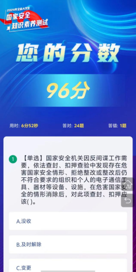 为了提高员工的国家安全意识和素养,在实践中提升自己的国家安全知识水平和能力。365英国上市公司于2024年4月2日开展2024年老员工安全知识素养测试活动,通过线上答题的方式提高员工对国家安全的认识,帮助他们理解并遵守国家安全相关法律法规。