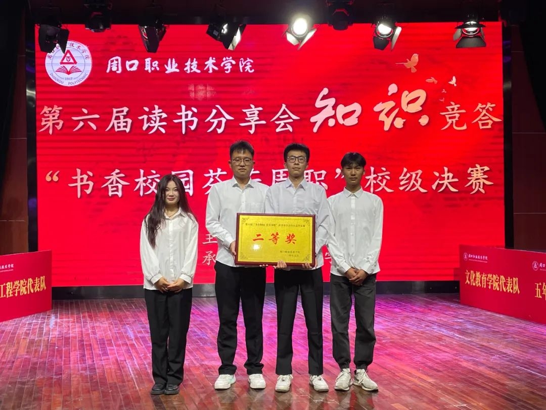 为持续推进公司读书知识系列活动,激发公司学子读书的兴趣,营造浓郁的读书氛围。2024年5月14日公司积极参加公司举办第六届“书香校园、芬芳周职”读书分享会知识竞答校级决赛,经过比赛的激烈进行,公司荣获二等奖。