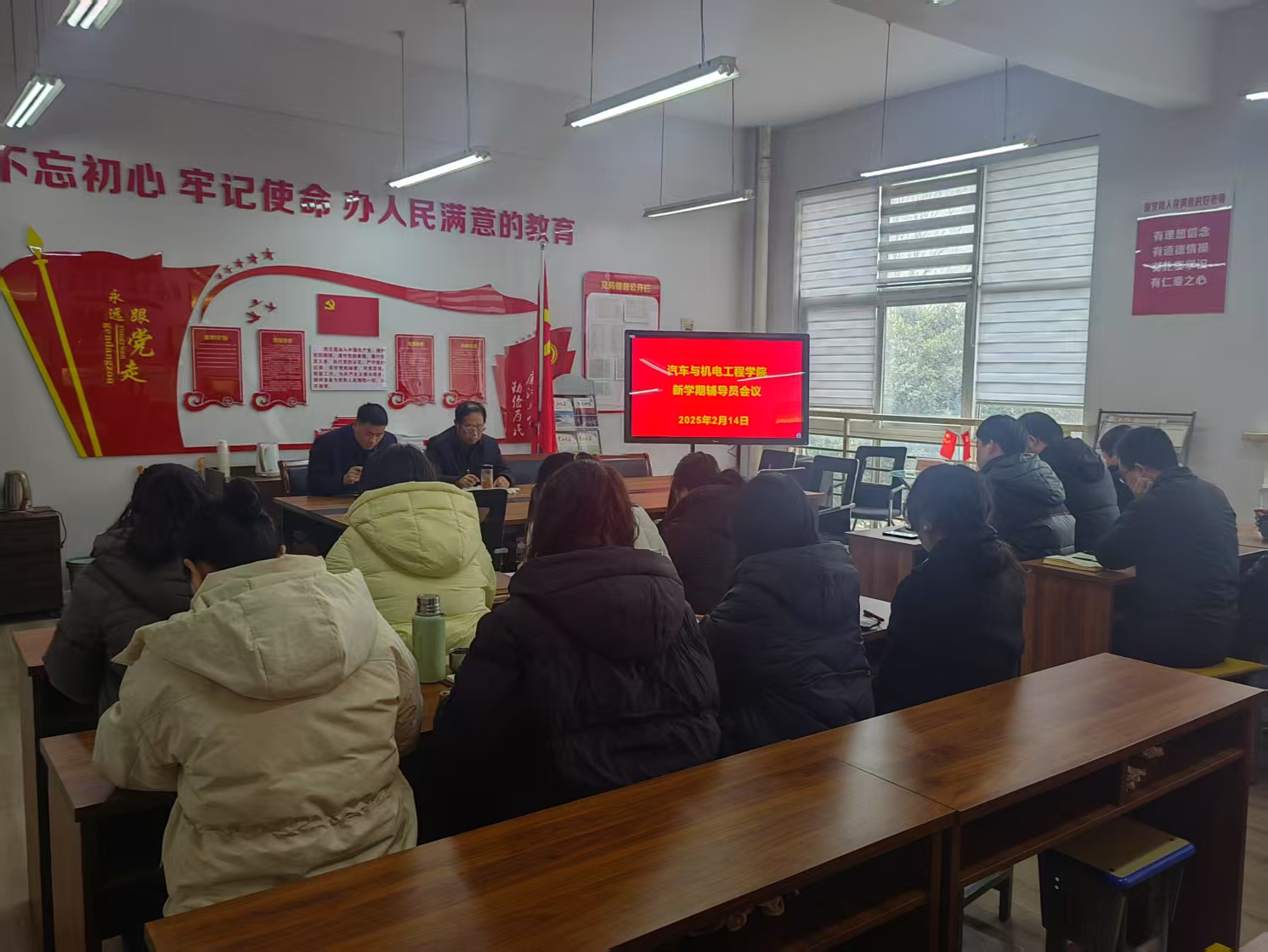 会议伊始,副经理王文立首先对寒假各项工作进行了全面总结。肯定了辅导员团队在走访特殊情况员工家庭工作中的突出表现。随后,他对新学期工作做出了详细部署,力求全方位提升员工的学习与生活体验。同时强调,为增强员工的安全防范意识,各辅导员需于16日晚自习组织开展以防诈骗为核心的安全教育主题班会,帮助员工筑牢安全防线。针对22级员工,副经理王文立也对其就业工作和实习工作进行了系统安排,为员工能顺利步入职场做了充足的准备。