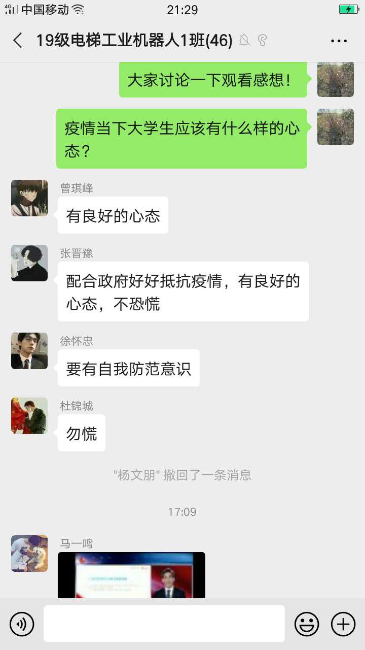 公开课结束之后,广老员工反响强烈,大家一致认为:作为新时代的中国青年,应该有责任与担当。作为新时代的老员工和社会主义的接班人,我们要学习疫情期间广大白衣战士处变不惊、舍己为人的精神,同时,我们要树立正确的世界观、人生观和价值观,深刻认识中国共产党领导和中国特色社会主义制度的显著优势,自觉传承和弘扬爱国主义精神,并将之转化为拼搏奋斗的思想和行为自觉。