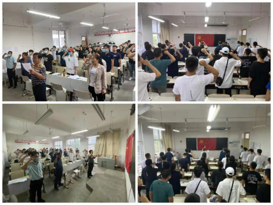 然后,大会依次进行入党介绍人介绍发展对象情况、审查情况汇总、与会党员发表意见,对各位发展对象能否入党进行充分讨论、无记名投票表决、党总支书记宣布接收预备党员、入党誓词宣誓、新党员代表发言等环节。