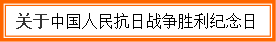 1945年9月2日,日本在战列舰上签字投降中国人民抗日战争胜利结束,宣告日本帝国主义彻底失败,世界反法西斯战争取得了完全胜利。9月3日,国民政府决定这一天为抗日战争胜利庆祝日。1946年4月,中国国民党中常会决议将庆祝胜利的9月3日,定为抗战胜利纪念日(“国定纪念日”)。 中华人民共和国成立后,1949年12月23日,中央人民政府政务院即公布了《全国年节及纪念日放假办法》,规定了“八一五抗战胜利纪念日”。2014年2月27日,十二届全国人民代表大会常委会第七次会议经表决通过了全国人民代表大会常委会关于确定中国人民抗日战争胜利纪念日的决定,确定每年9月3日为中国人民抗日战争胜利纪念日。