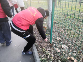 随后,全院入党积极分子穿上鲜红色亮丽的马甲,围绕着校园捡纸屑、烟头、塑料袋等垃圾。大家积极主动,当看到路边有未清扫的垃圾时,立即有人跑过去将其捡起,丝毫不顾忌那些是否会脏了手。活动持续了将近1个小时,整个过程气氛活跃,大家发扬了不怕苦、不怕累、不怕脏的风格,体现了当代老员工良好的精神风貌。