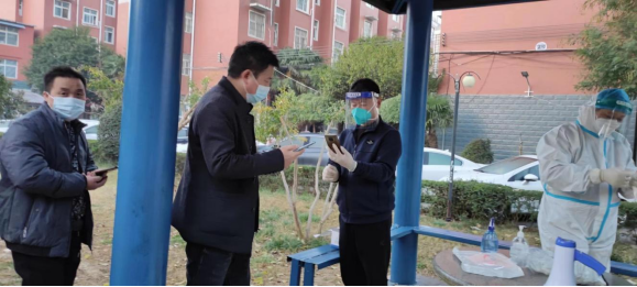 教师党员毕朝旭在荷花社区核酸采集志愿者服务