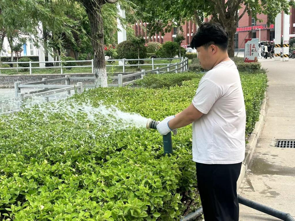 活动开始,团员们在实验(实训)室认真清理实验台,整理实验器材,打扫实验设备,仔细清扫地面、死角处的灰尘,确保实验(实训)室的安全与整洁;除了室内环境的整治,团员们还积极投身于校园绿化工作。他们手持水枪,为花草树木浇水,让校园的绿色生机勃勃;他们还仔细捡拾道路两旁的垃圾,清理校园各处的小广告,用实际行动维护校园的整洁美观。
