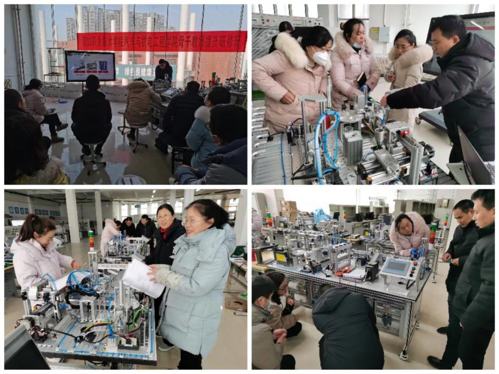 首先,副经理齐俊平强调了本次培训的重要性,希望老师们能够回归学员身份,用心学习,通过本次培训能够有所悟、有所得。并提出三点要求:一是珍惜机会,认真对待;二是深入思考,举一反三;三是学以致用,落地落实。之后,河南盛世恒信有限公司的工程师,对机电相关专业的新设备、新技术和新工艺进行了深入的讲解,并对机电一体化综合实训平台的操作进行现场指导和考核。